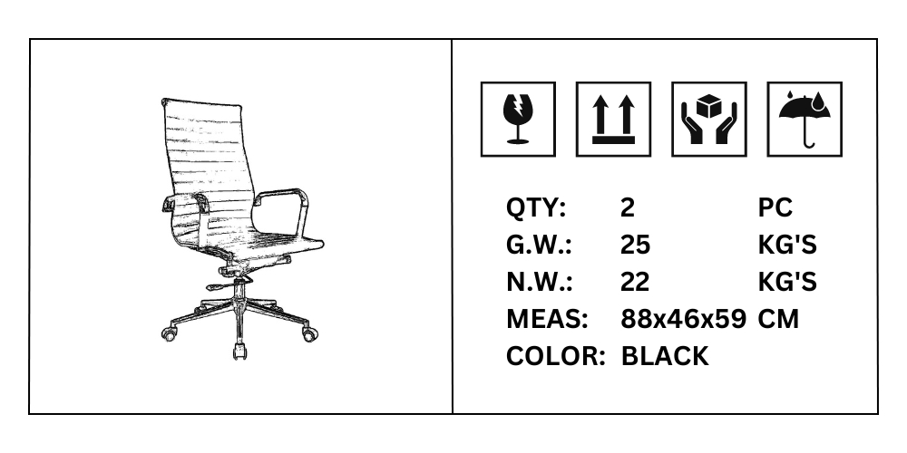 EAMES EXECUTIVE HIGH BACK – 5 YEAR WARRANTY